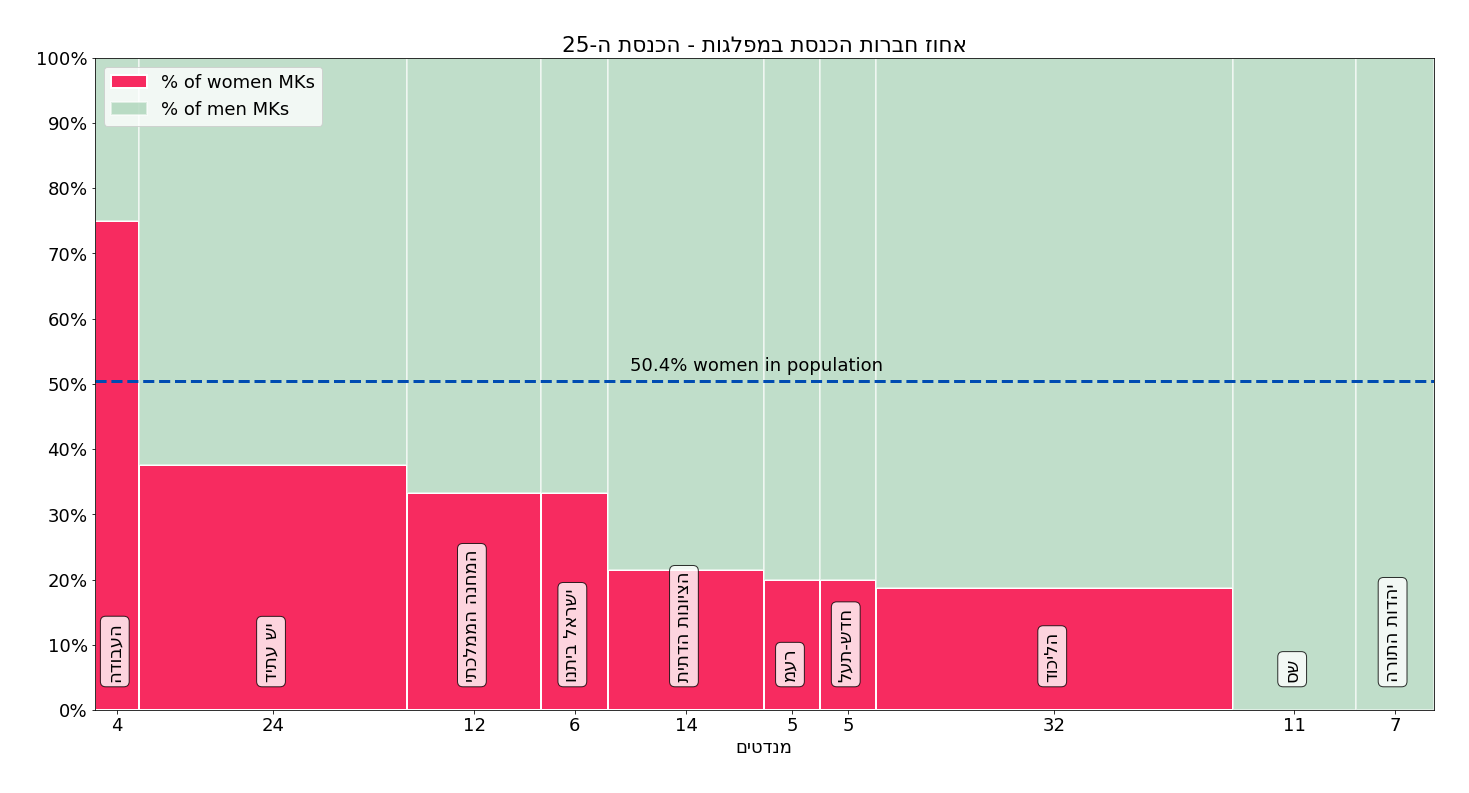 ישראל ממוקמת במקום ה-100 בעולם מתוך 187 מדינות מביחינת אחוז חברות הפרלמנט (הבית התחתון/היחיד אם רוצים לדייק) .