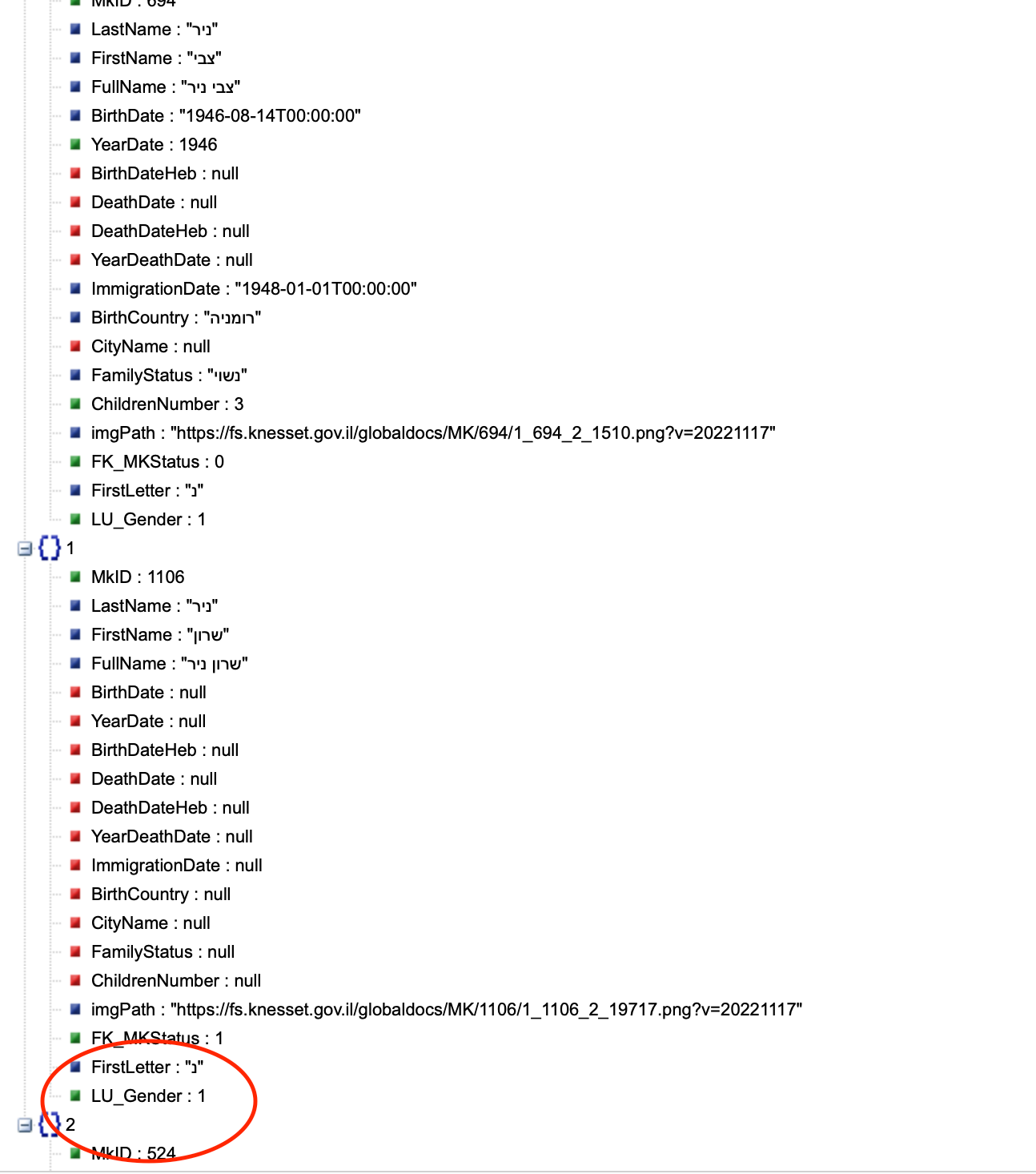 אנקדוטה טפשית: בקובץ המידע שגירדתי מאתר הכנסת, שרון ניר מישראל ביתינו סומנה כגבר. זה תוקן מתישהו בשבועות האחרונים